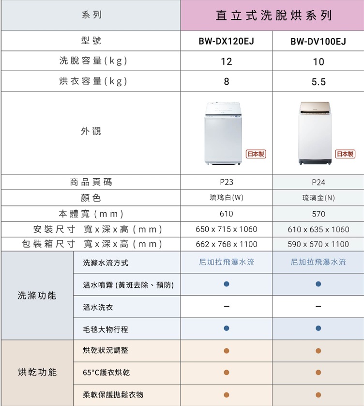 10 公斤 直立式洗脫烘BW-DV100EJ