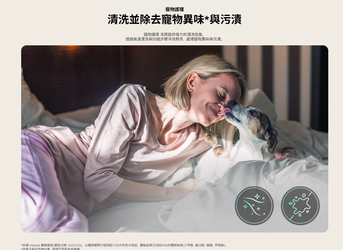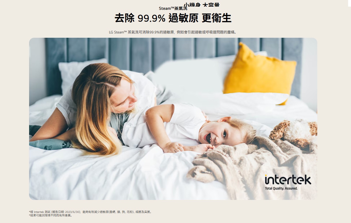 - Steam™蒸氣洗:60°C天然蒸氣去除99.9%過敏原