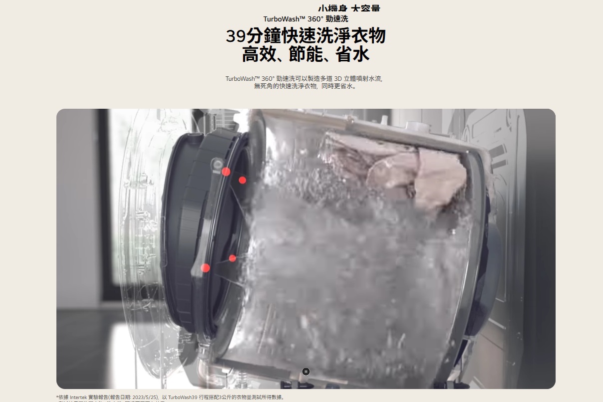 - TurboWash™ 360°勁速洗 39分鐘快速洗淨衣物