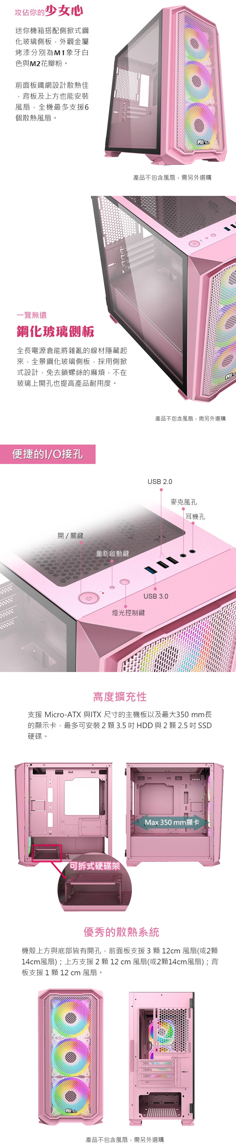 亞碩國際 M2 M-ATX機殼+3入風扇組 (粉/白)