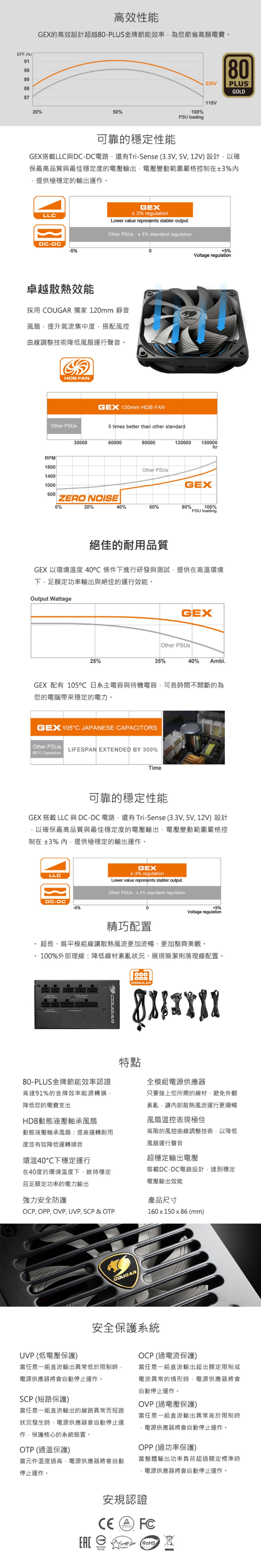 【COUGAR 美洲獅】GEX 750w 金牌電源