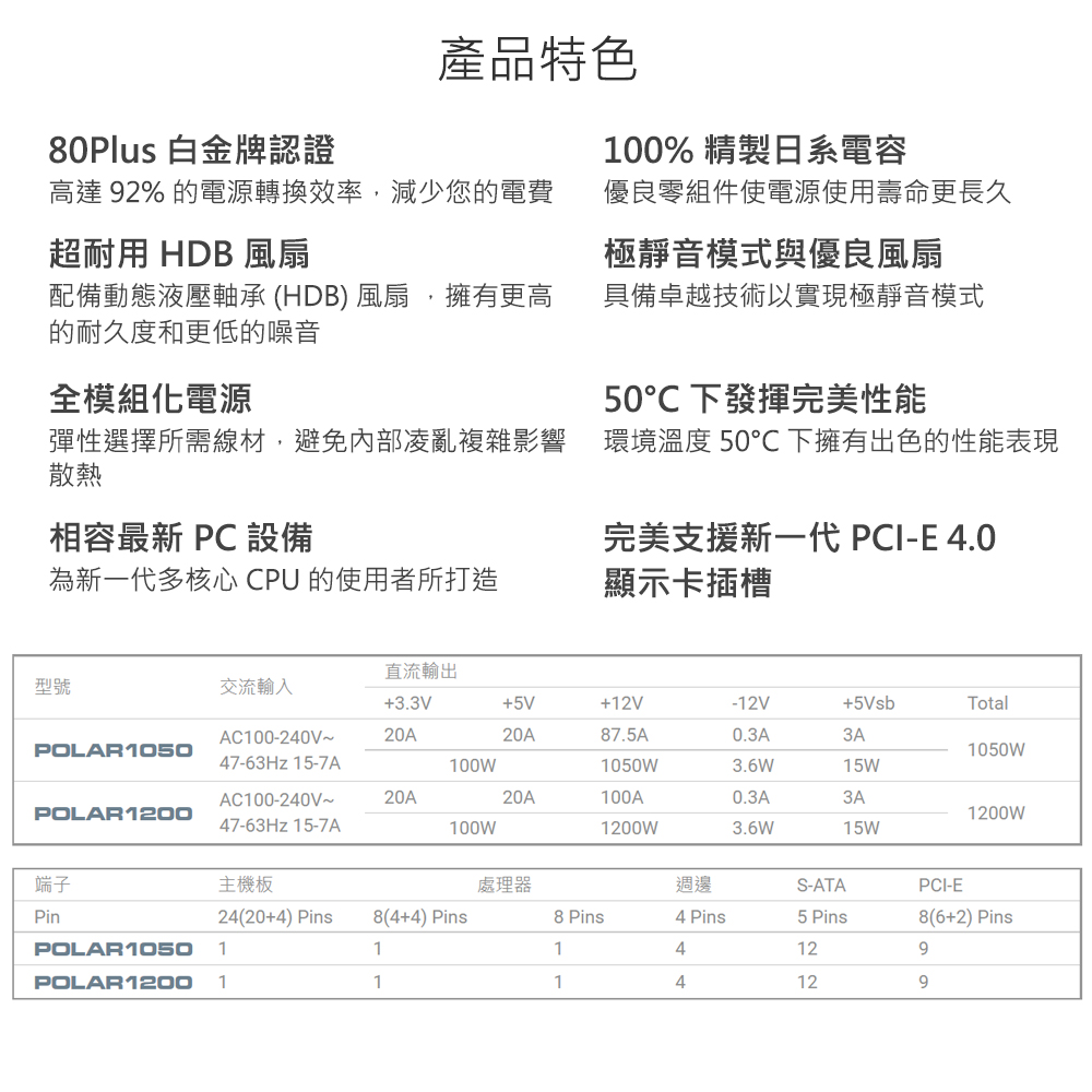 【COUGAR 美洲獅】POLAR 1200w白金牌電源