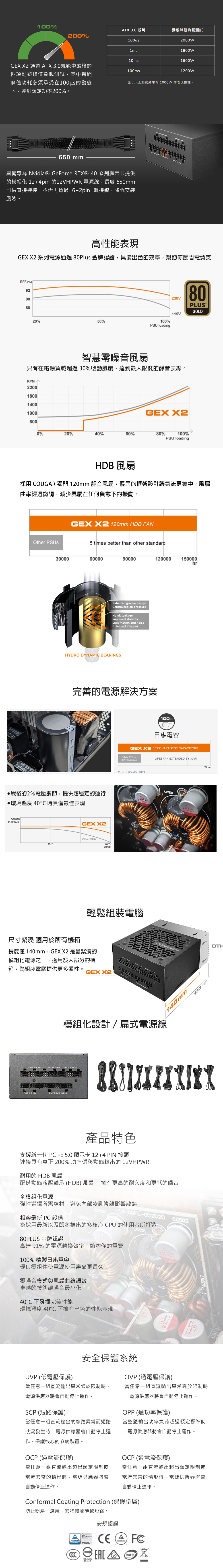 【COUGAR 美洲獅】GEX X2 1000w 金牌電源