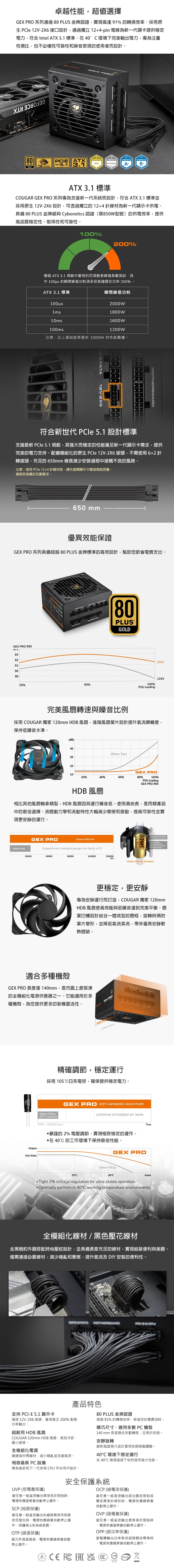 【COUGAR 美洲獅】GEX PRO 850W (ATX3.1) 金牌電源