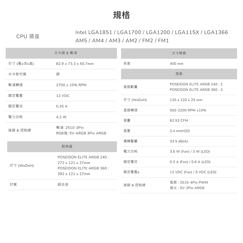 【COUGAR 美洲獅】POSEIDON ELITE 360 一體式水冷(白)