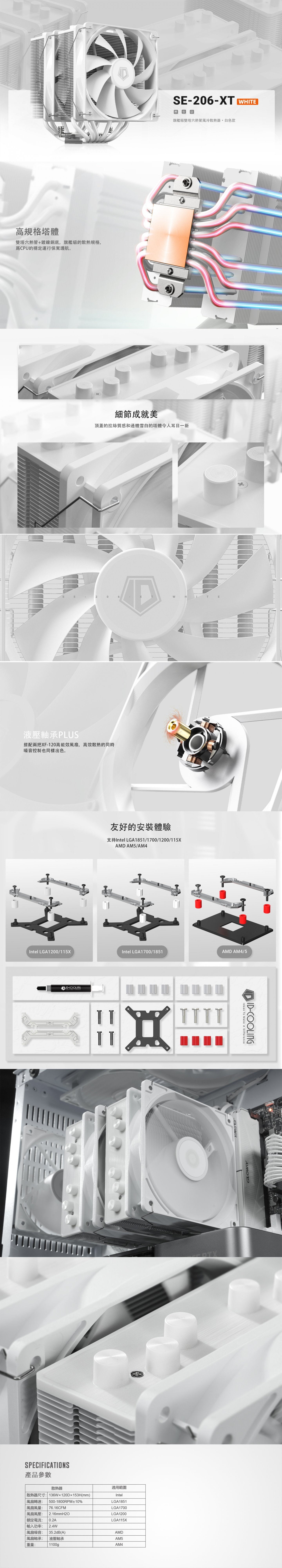 ID-COOLING SE-206-XT WHITE /BLACK 風扇 / 水冷 ( CPU散熱器 ) 黑/白