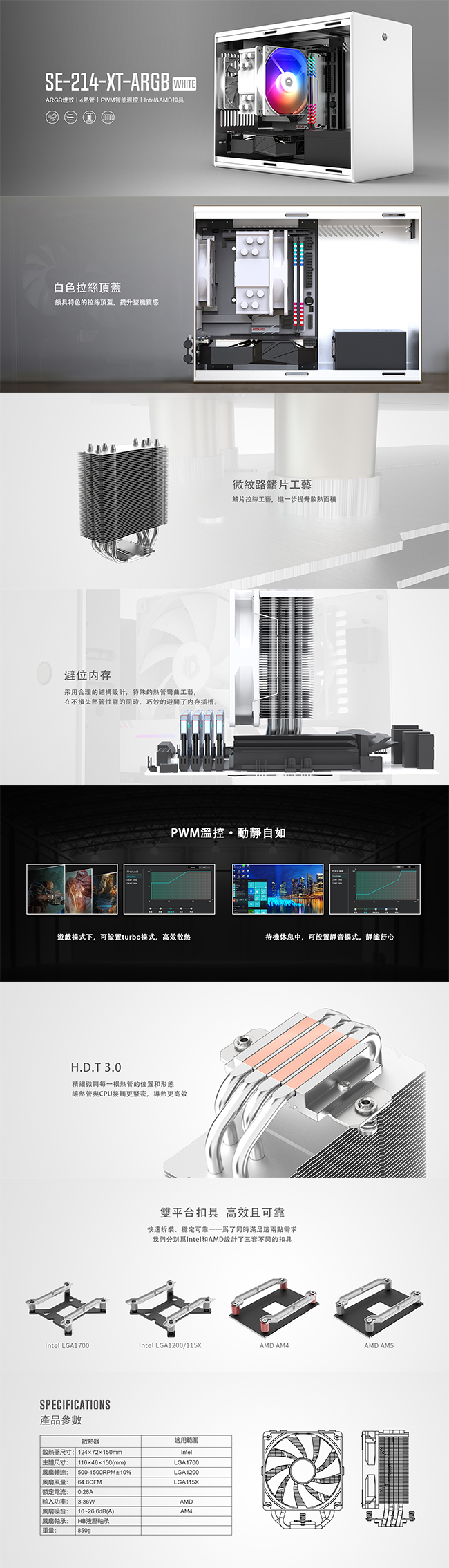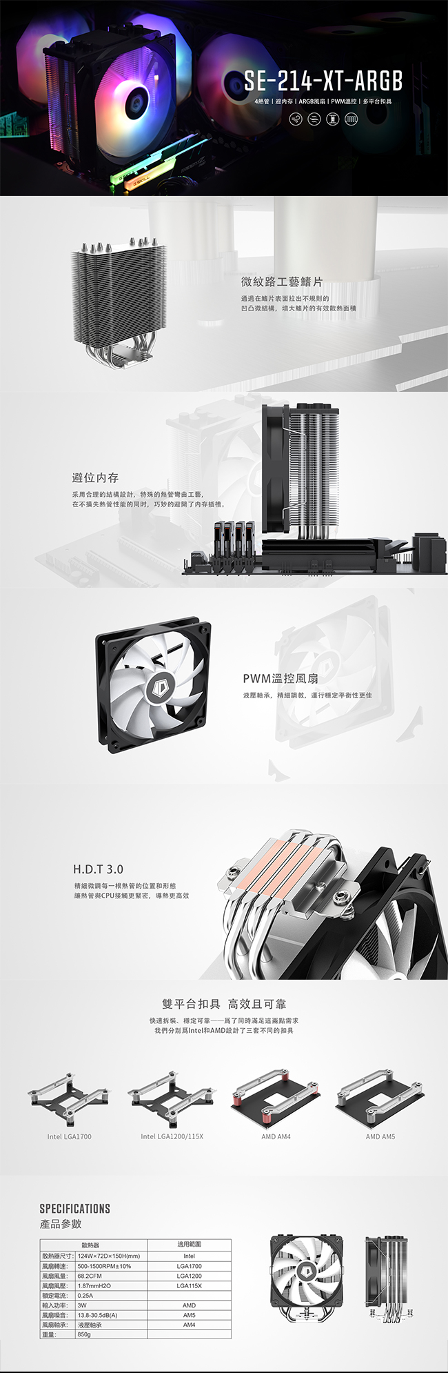 ID-COOLING SE-214-XT ARGB 風扇 水冷 (CPU散熱器) 黑/白