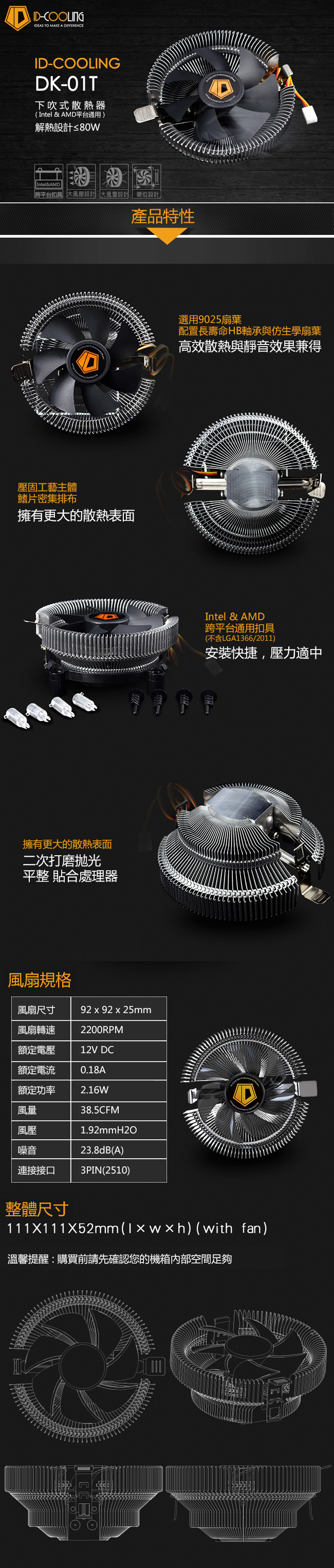 ID-COOLING DK-01T 風扇 (CPU散熱器 )