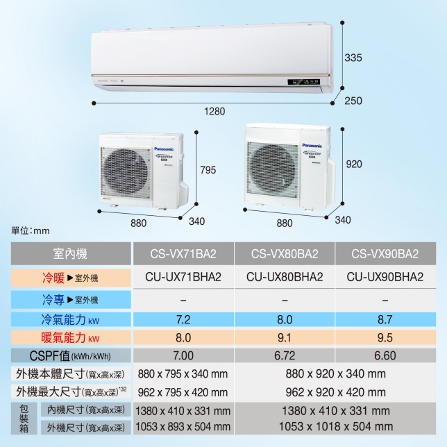 ˙室內機重量:18㎏ ˙室外機:CU-UX80BHA2