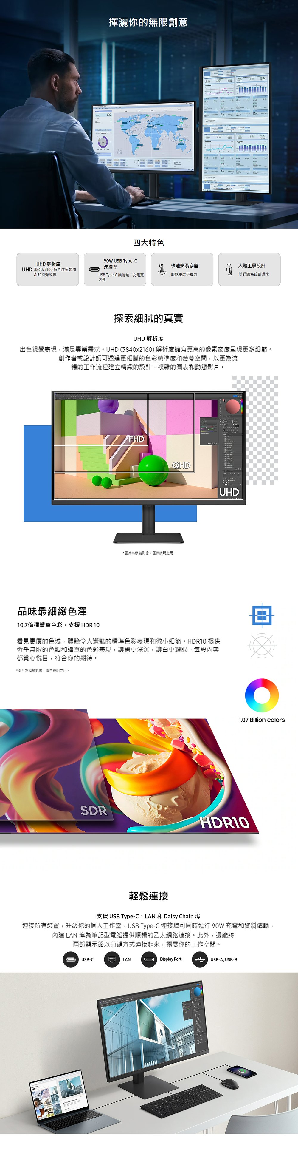 ● 支援 USB Type-C、LAM、Daisy Chain 埠