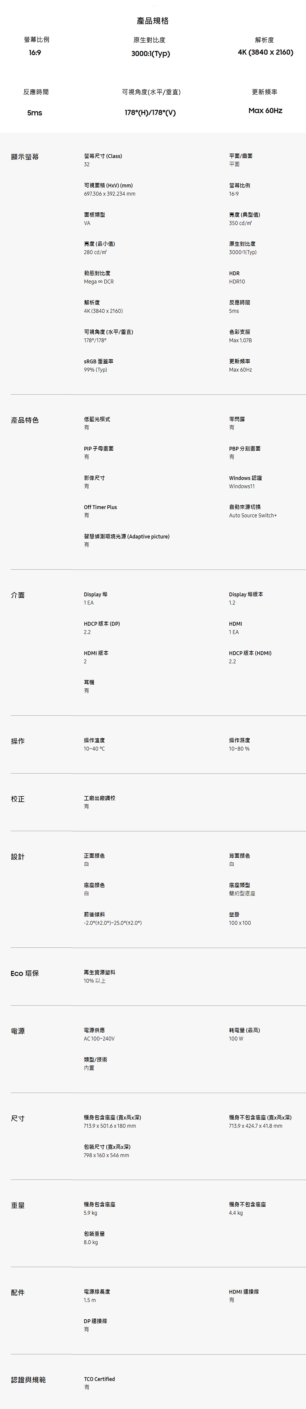 三星SAMSUNG S32D707EAC ViewFinity S7 4K創作者色彩專業螢幕(白色)