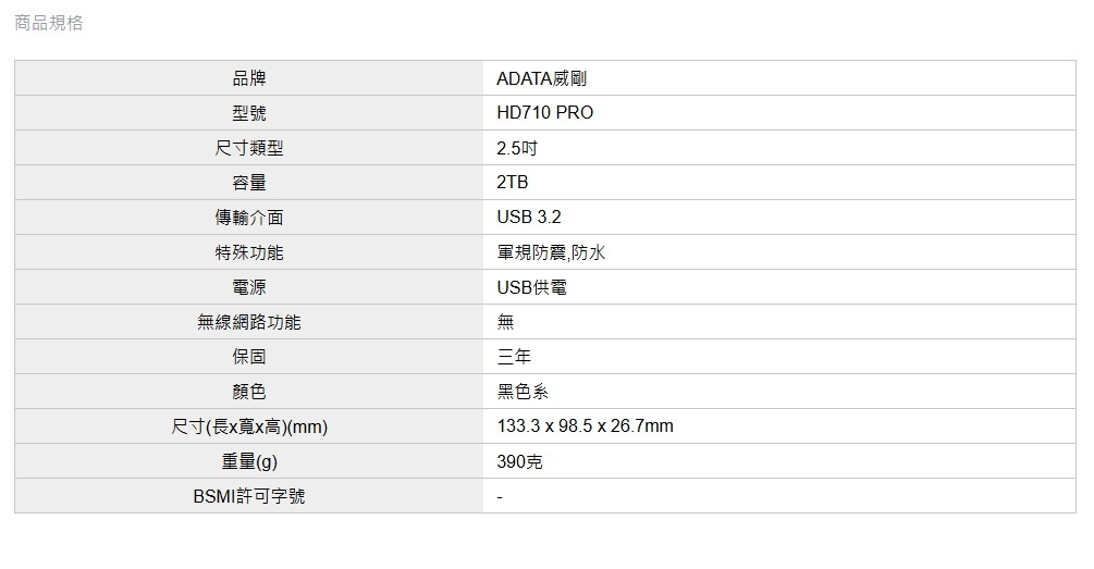 ADATA 2TB HD710P 外接式硬碟 IP68 防水防塵 軍規