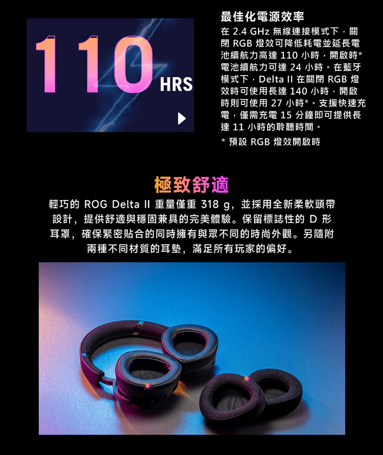 ASUS 華碩 ROG Delta II 無線三模電競耳機 黑色"