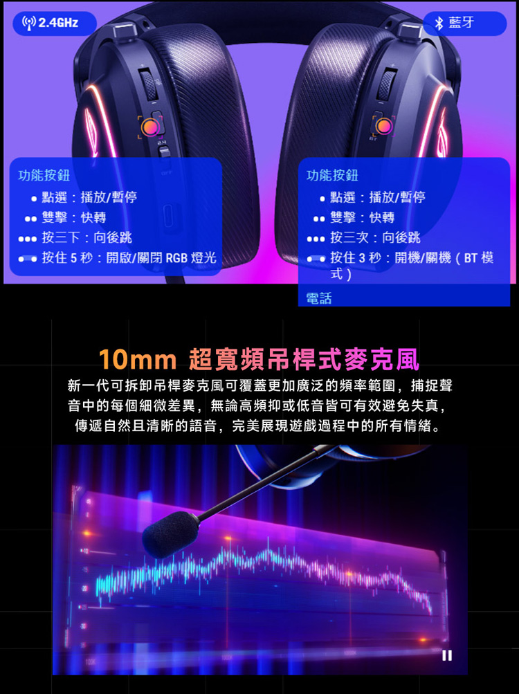 ❤️三模連線功能:具備藍牙® 2.4 GHz RF 搭配 ROG SpeedNova 無線技術與有線 3.5 mm 連接,提供與電腦、遊戲機和行動裝置等多設備類型的全面相容性