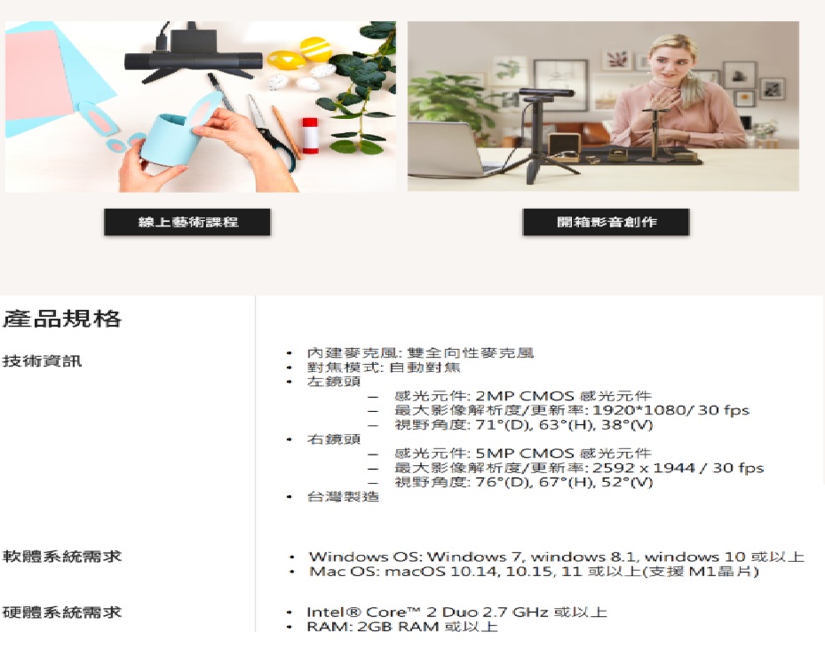 • 高畫質 + 多角度拍攝:製作教學影片時可一次錄製兩個視角,節省剪輯工作。