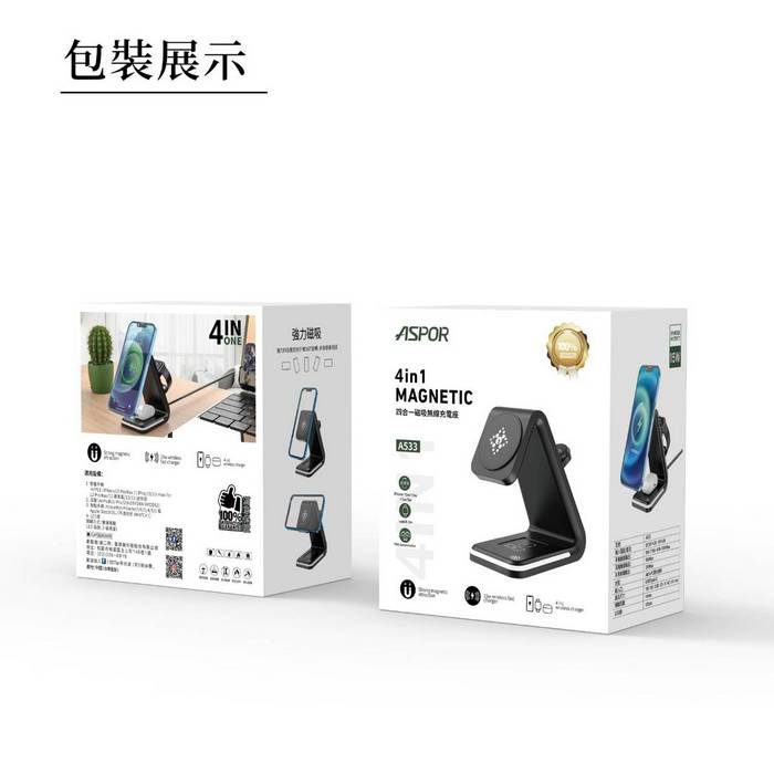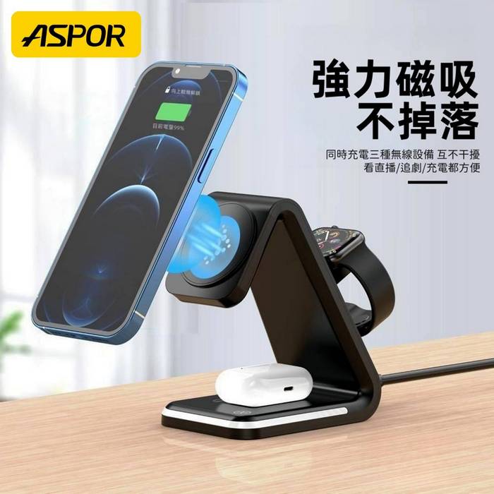 ASPOR 急速15W 四合一磁吸無線充電座(Magsafe/夜燈/iPhone/Watch/Airpods)