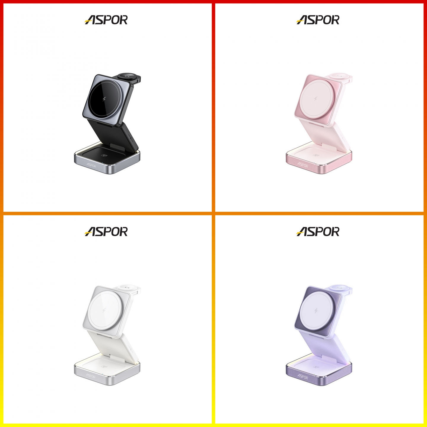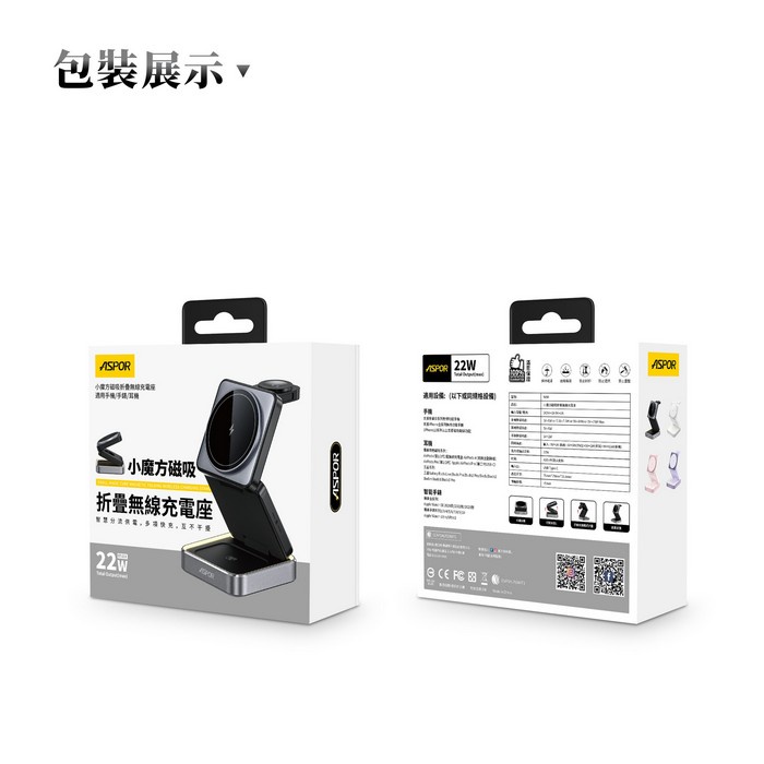 ASPOR W90 22W小魔方摺疊三合一磁吸無線充電座 可調節氛圍燈(手機/智慧手錶/耳機無線充電)