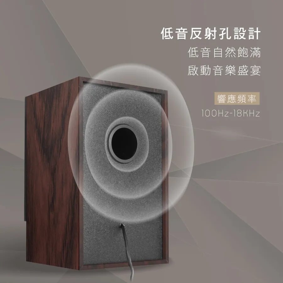 【KINYO】二件式木質立體擴大音箱 (PS) 全木質 耳機 麥克風插孔 |電腦喇叭 2.0音箱