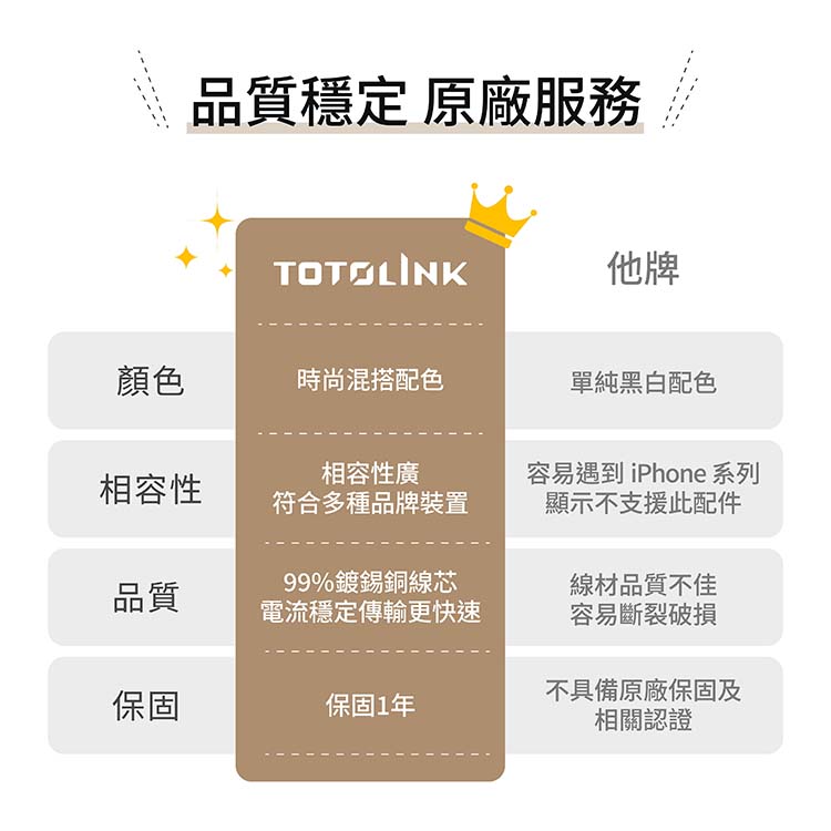 99.99%鍍錫銅線芯工藝 穩定充電 高品質 抗氧化
