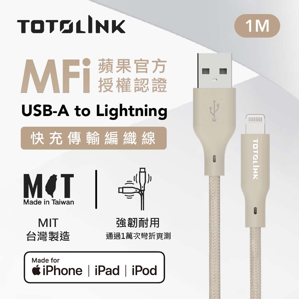 TOTOLINK 1米USB-A-Lightning強韌快充傳輸編織線-柔霧奶 T100-AL T100-CL