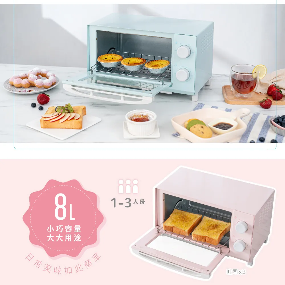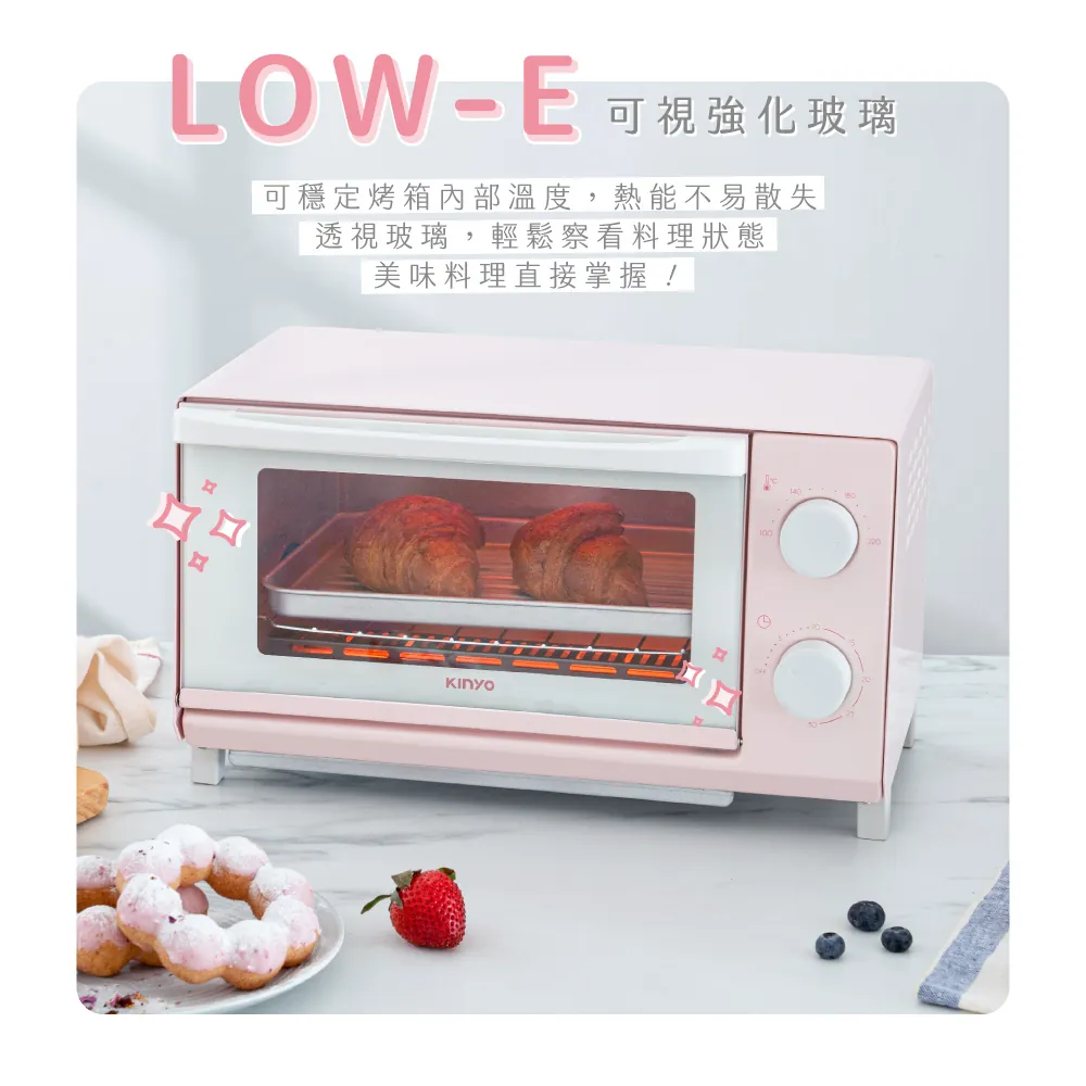 【KINYO】8L馬卡龍多功能烤箱 抽取式集屑盤 便捷又快速 配件可拆卸清潔 一洗即淨便利清潔
