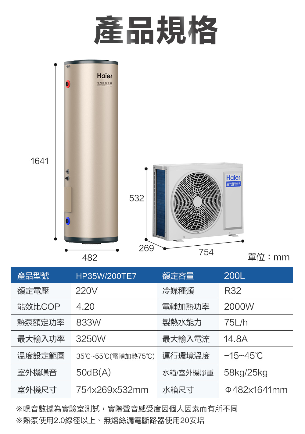 Haier 海爾 R32熱泵熱水器200L(HP35W/200TE7 )