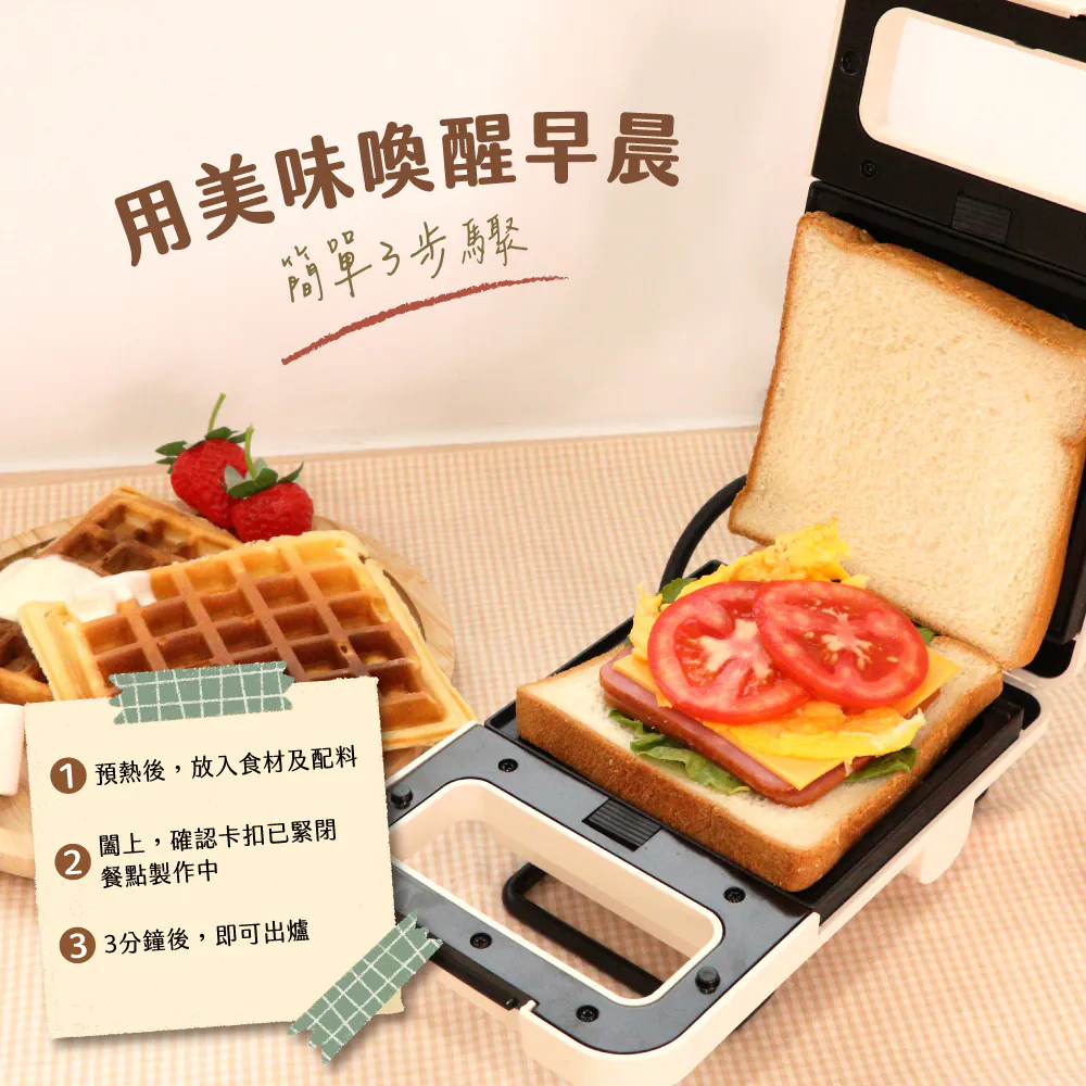 二種烤盤-輕鬆隨享創意熱壓三明治及美味格子鬆餅。