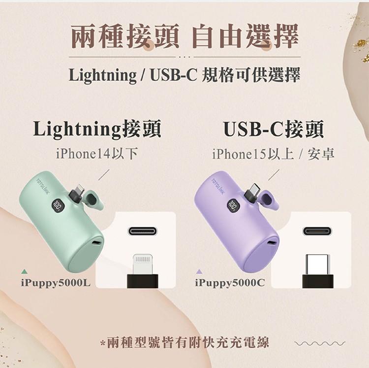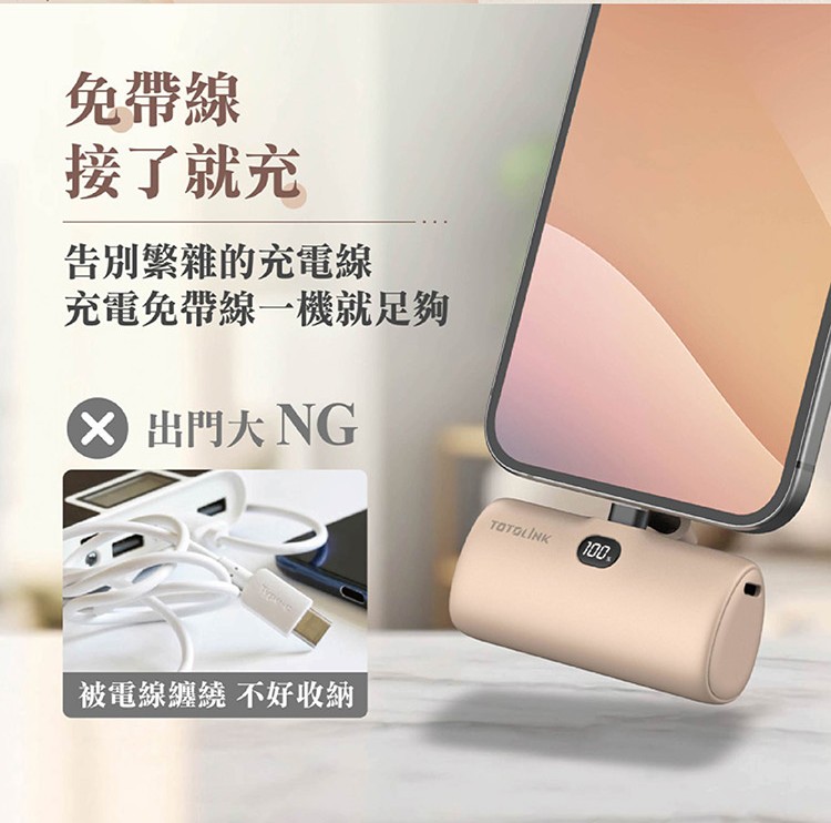 TOTOLINK 5000C USB-C Lightning 快充快充直插式行動電源