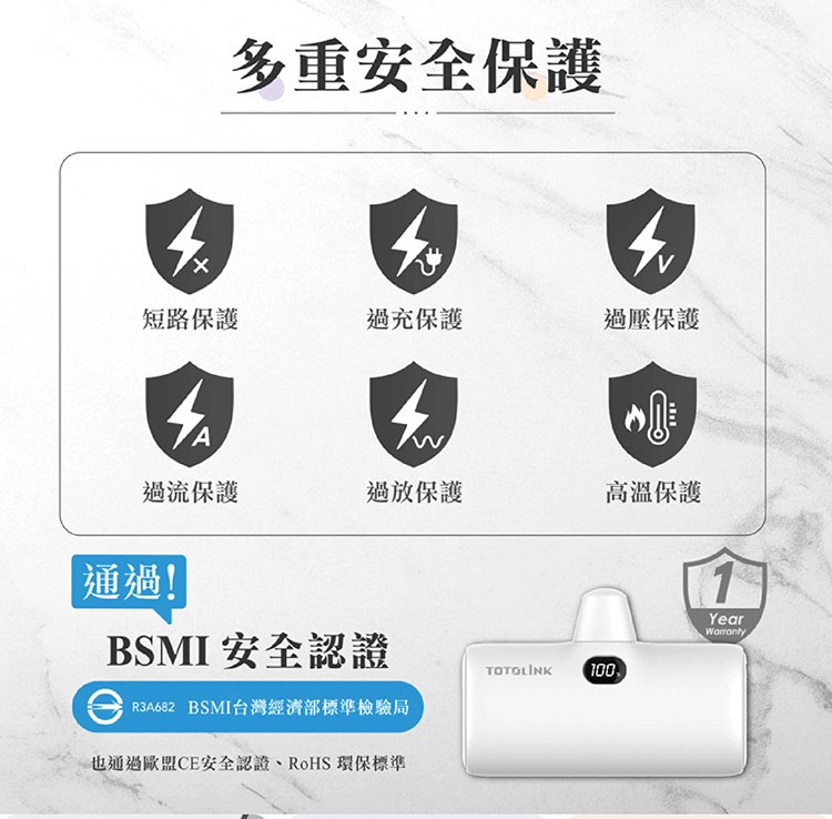 保固1年保固包裝內容快充直插式行動電源 x 1