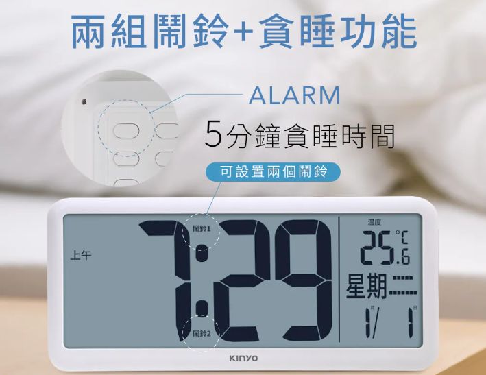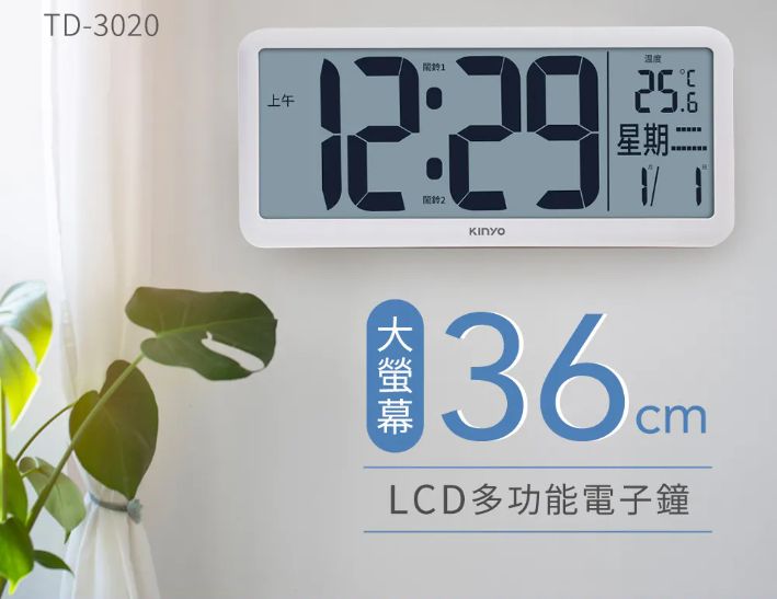 【KINYO】多功能LCD大螢幕電子鐘36cm(TD-3020)