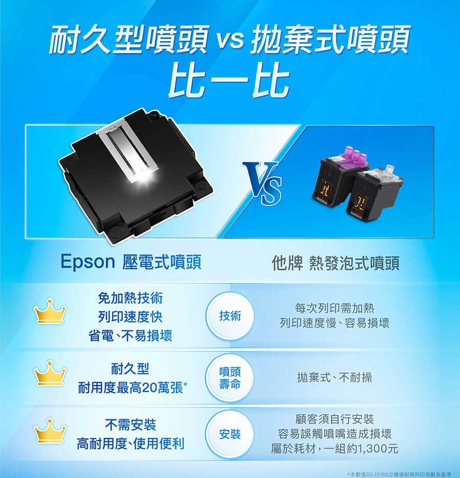 Epson L3210 機器壽命高達 3 萬張,耐用且品質穩定,凡購買主機即享有 1年原廠保固服務