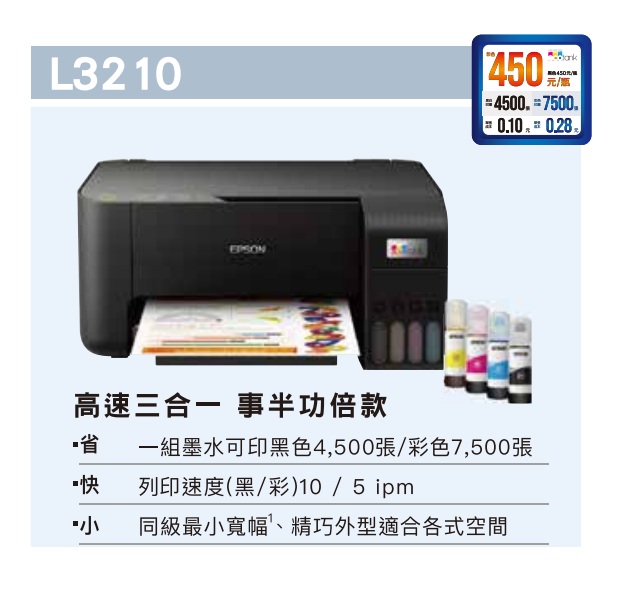 Epson L3210 高速三合一連續供墨印表機|精省列印好夥伴