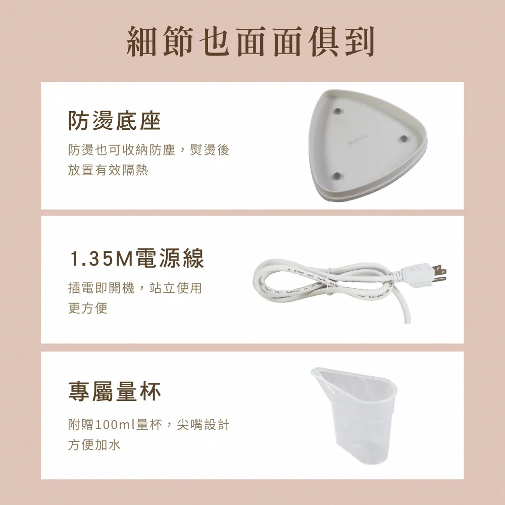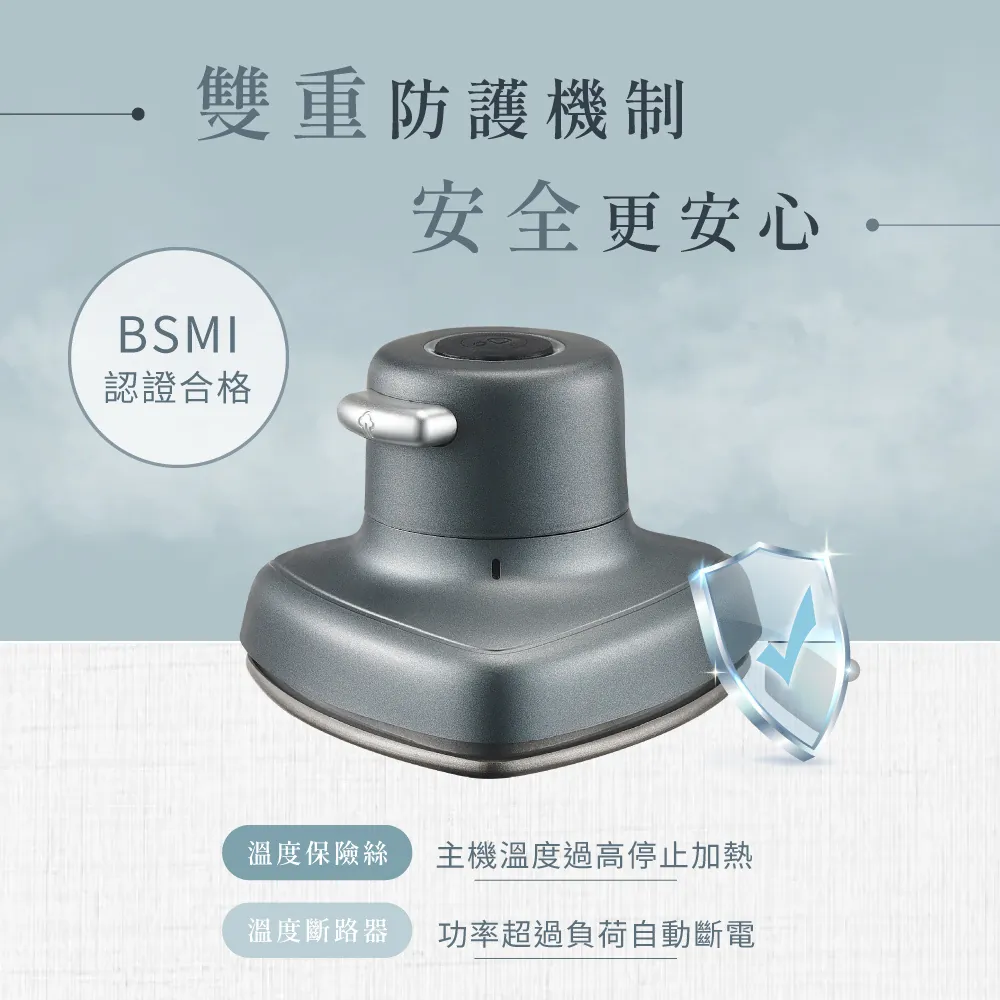 - 穩定發熱體,持續高溫蒸氣輸出,穿透布料撫平皺褶