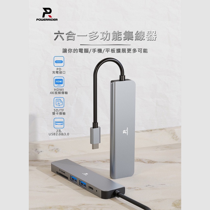 PowerRider HB-P6 4K六合一 充電傳輸集線器