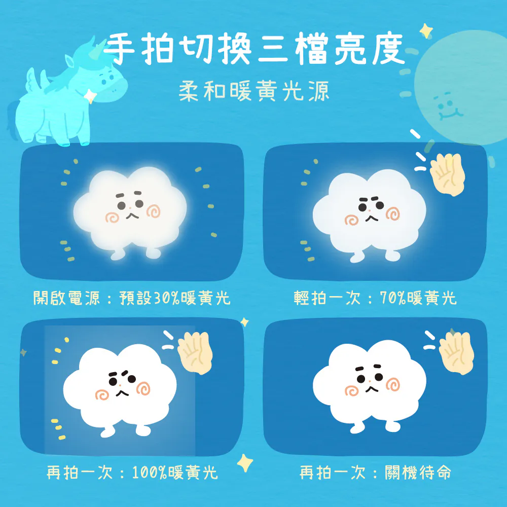 手拍切換亮度,溫暖氣氛夜燈伴眠