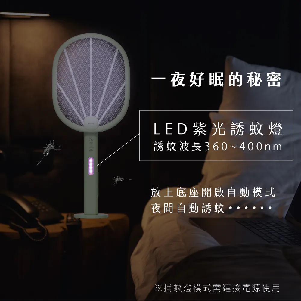 一拍兩用,日常手動電擊蚊蟲,夜間紫光誘蚊。