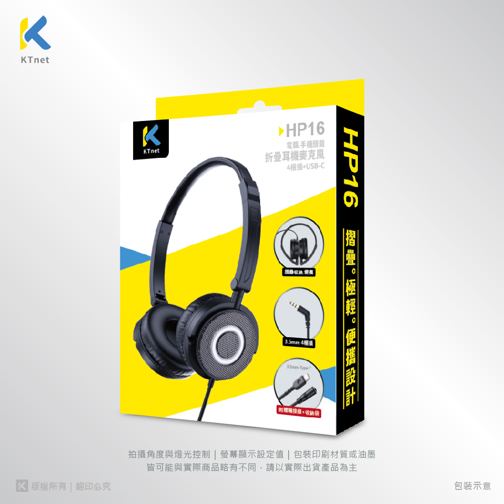 kt.net 廣鐸 HP16 電腦.手機頭戴折疊耳機麥克風 4極插+USB-C 黑