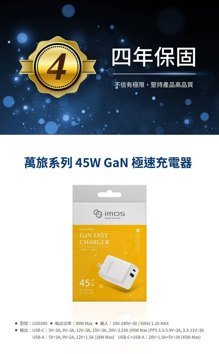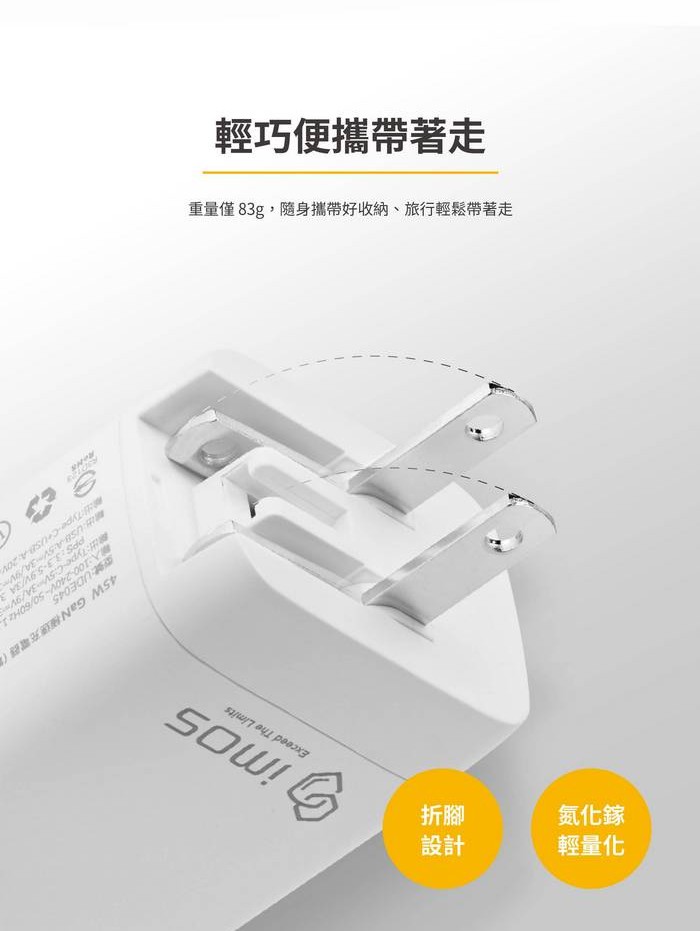 IMOS 45W萬旅GAN極速充電器(四年保固)