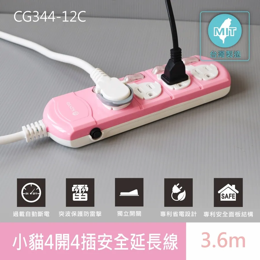 【KINYO】貓咪動物延長線-12呎 (CG344-12C)