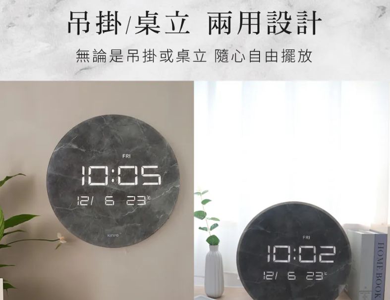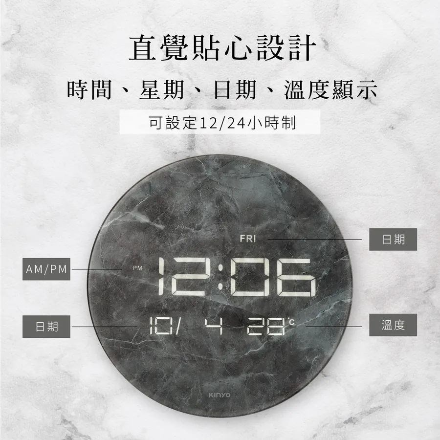 【KINYO】LED大理石紋 玻璃電子鐘12.5吋