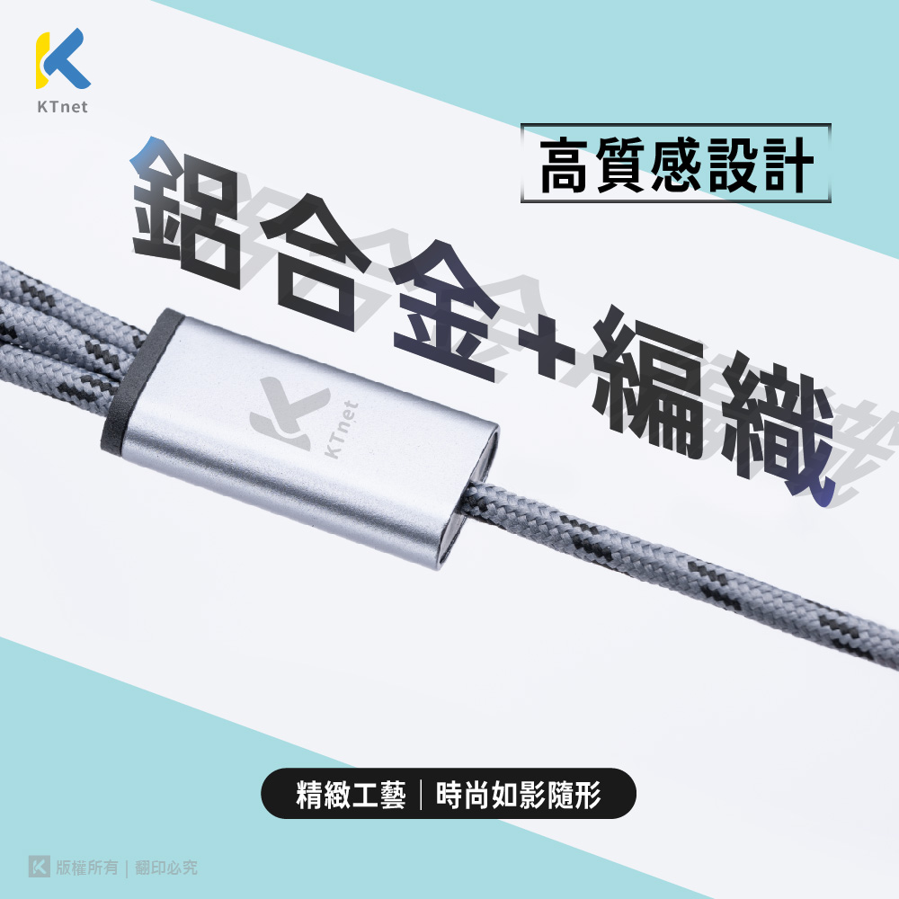 ktnet G40 TypeC 1對3 鋁合金編織充電線1.2M 同時充電 支援QC 3快速充電3A15W 編織線