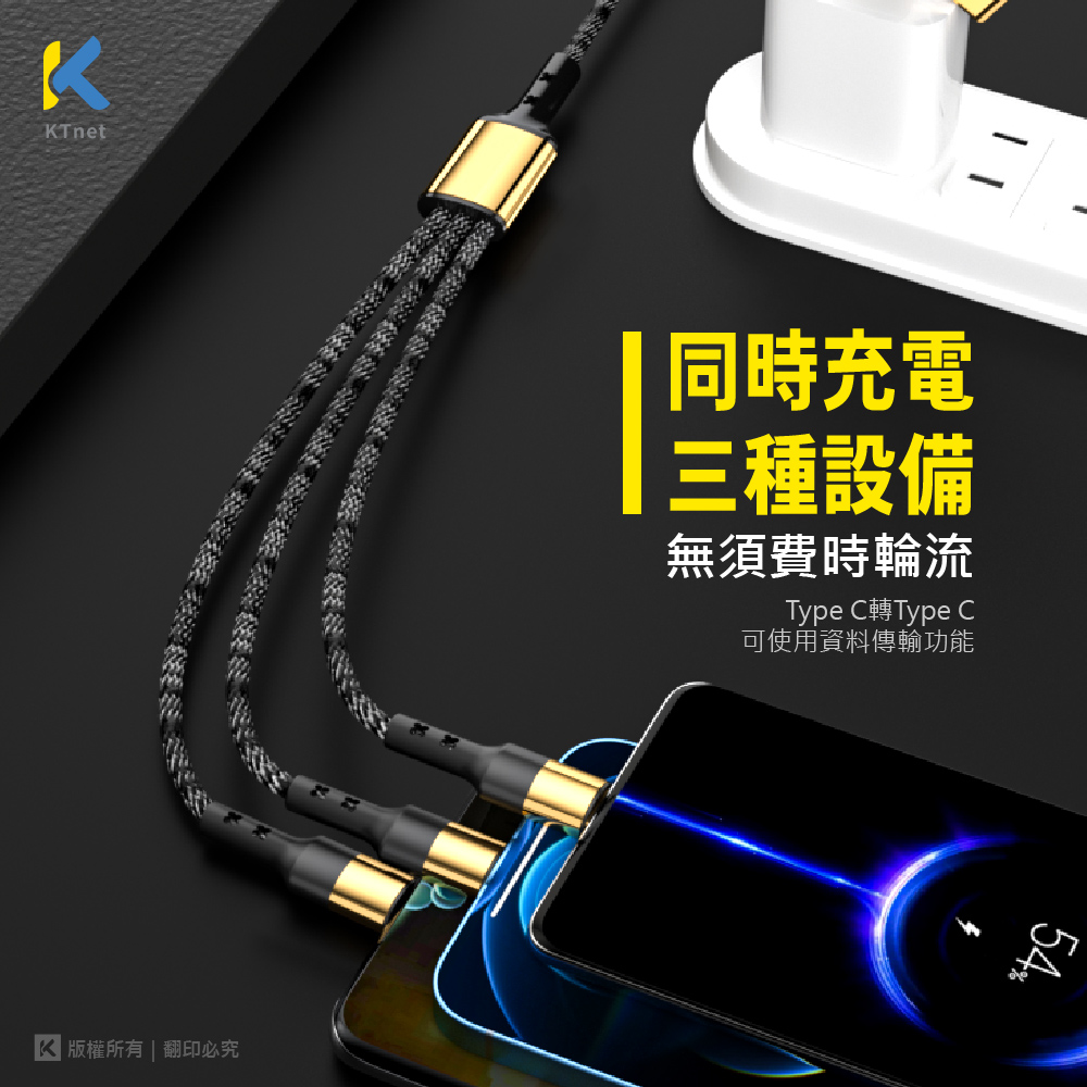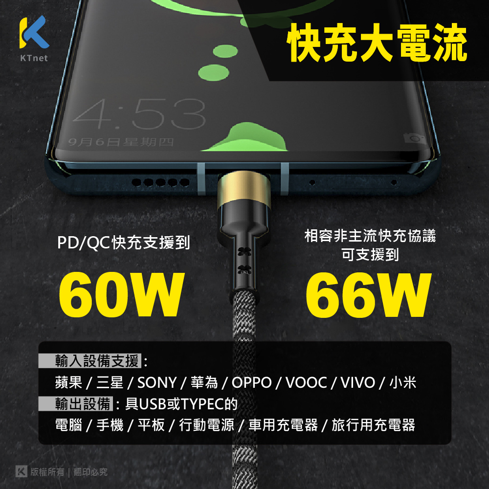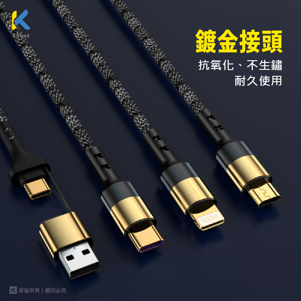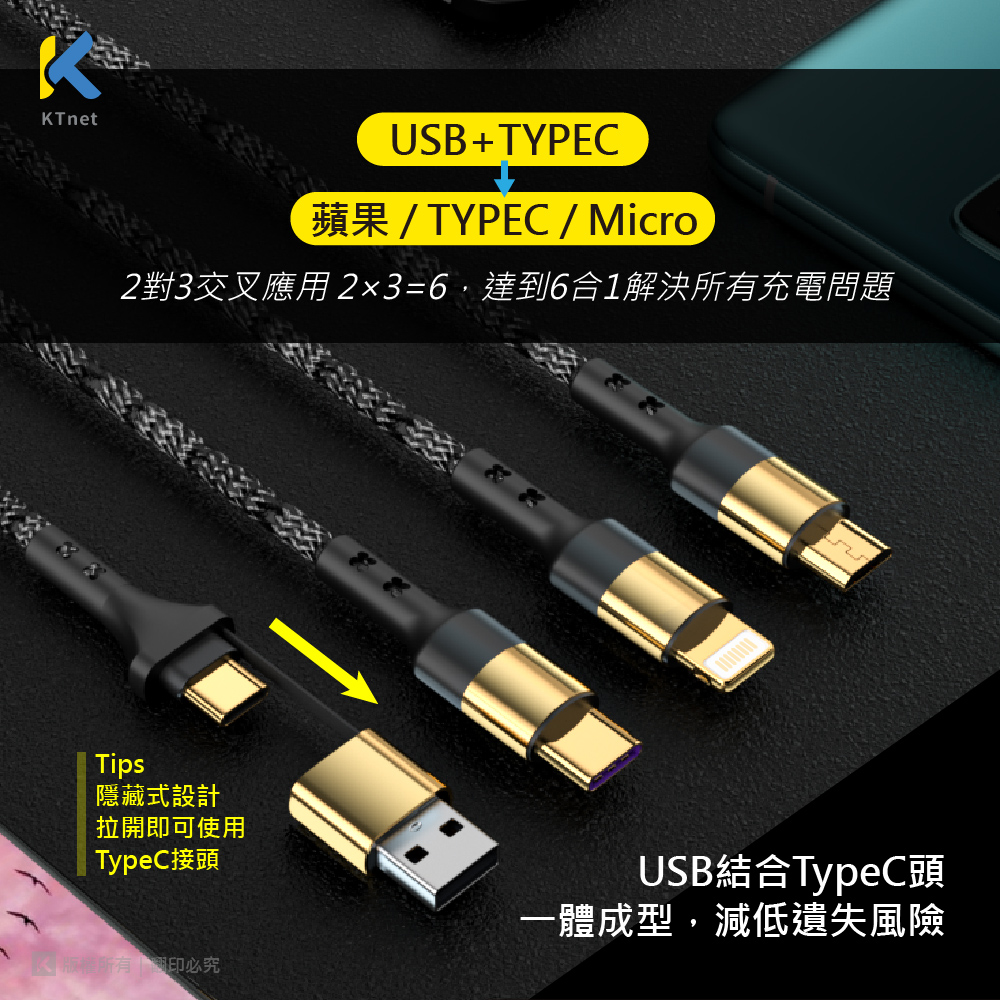 【KTnet】G423 U+C 6合1 PD 6A快充編織線 1.2M PD/QC快充可達60W