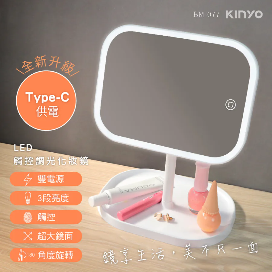 【KINYO】LED觸控調光化妝鏡 (BM-077)