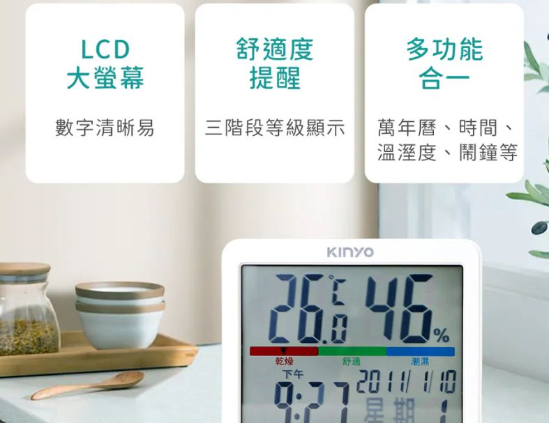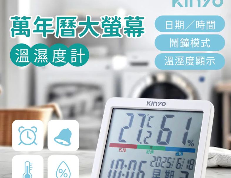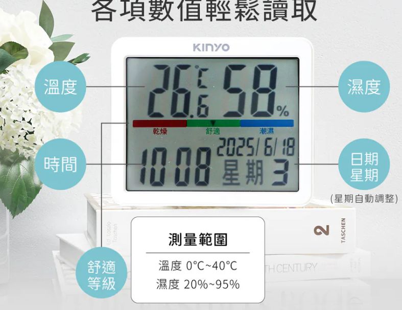 【KINYO】萬年曆大螢幕溫濕度計_白 (TC-25)