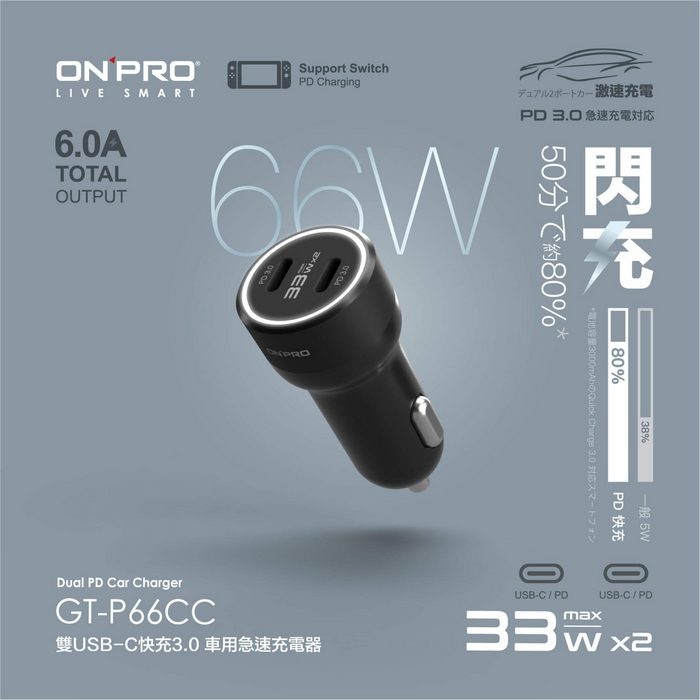 ONPRO-66W 雙PD孔鋁合金MINI車充頭 (BSMI)