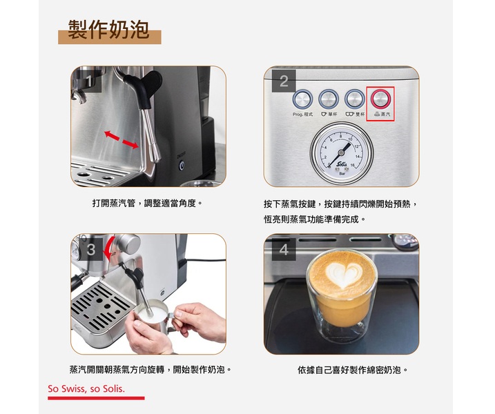 強勁蒸汽,可製作奶泡