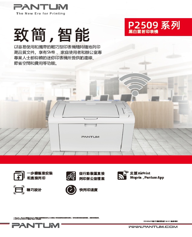 【PANTUM 奔圖】P2509W 黑白雷射單功能印表機