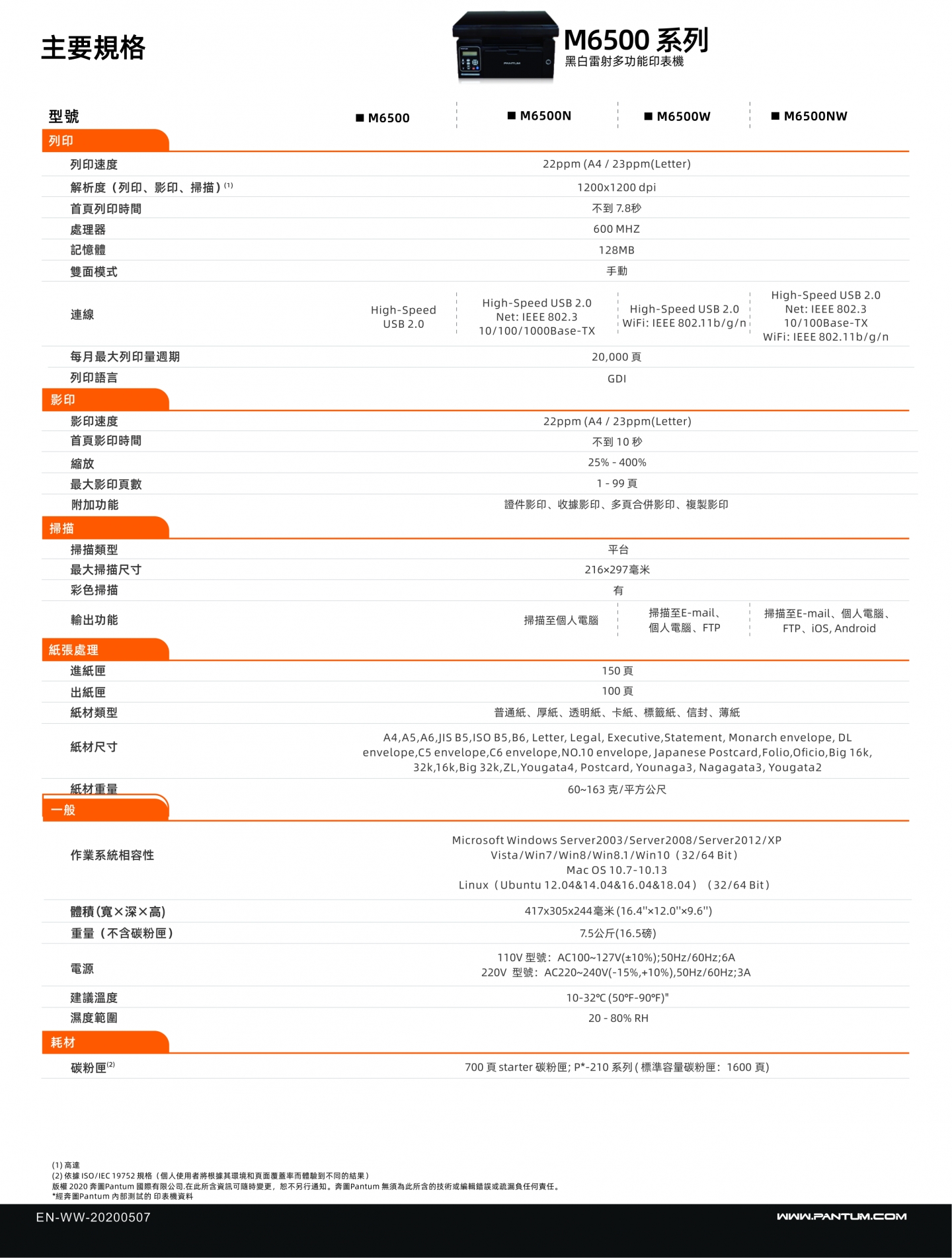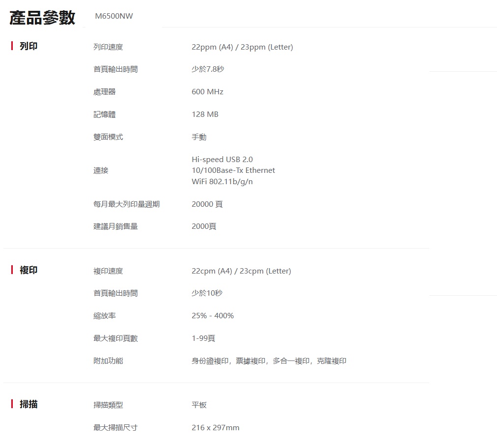 【PANTUM 奔圖】 M6500NW 黑白雷射多功能印表機