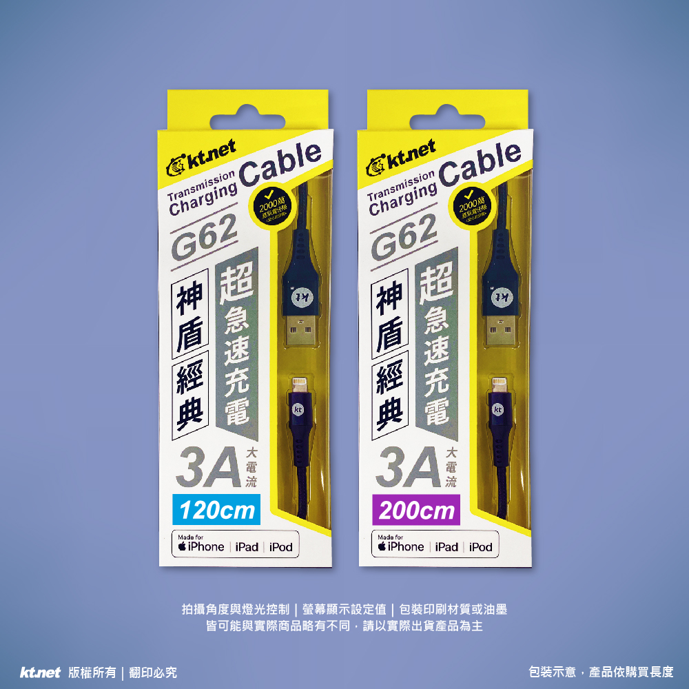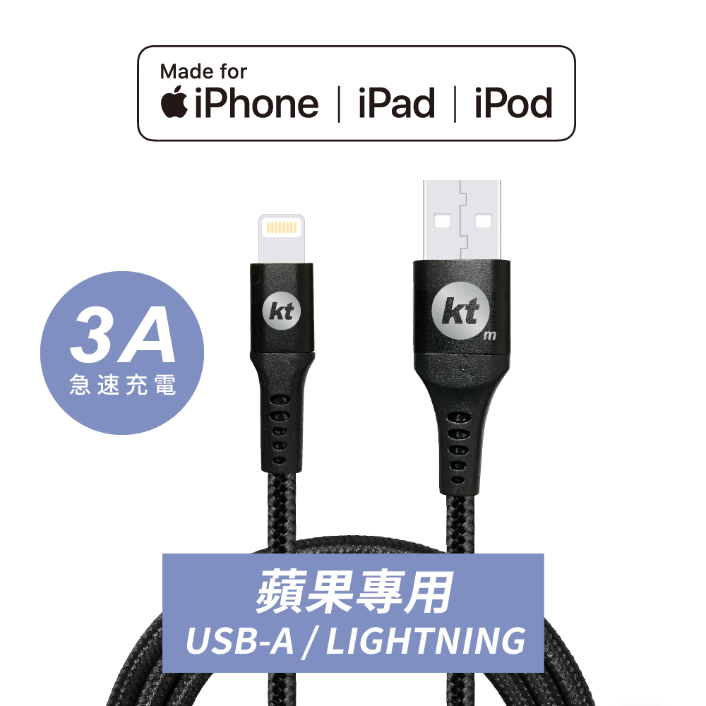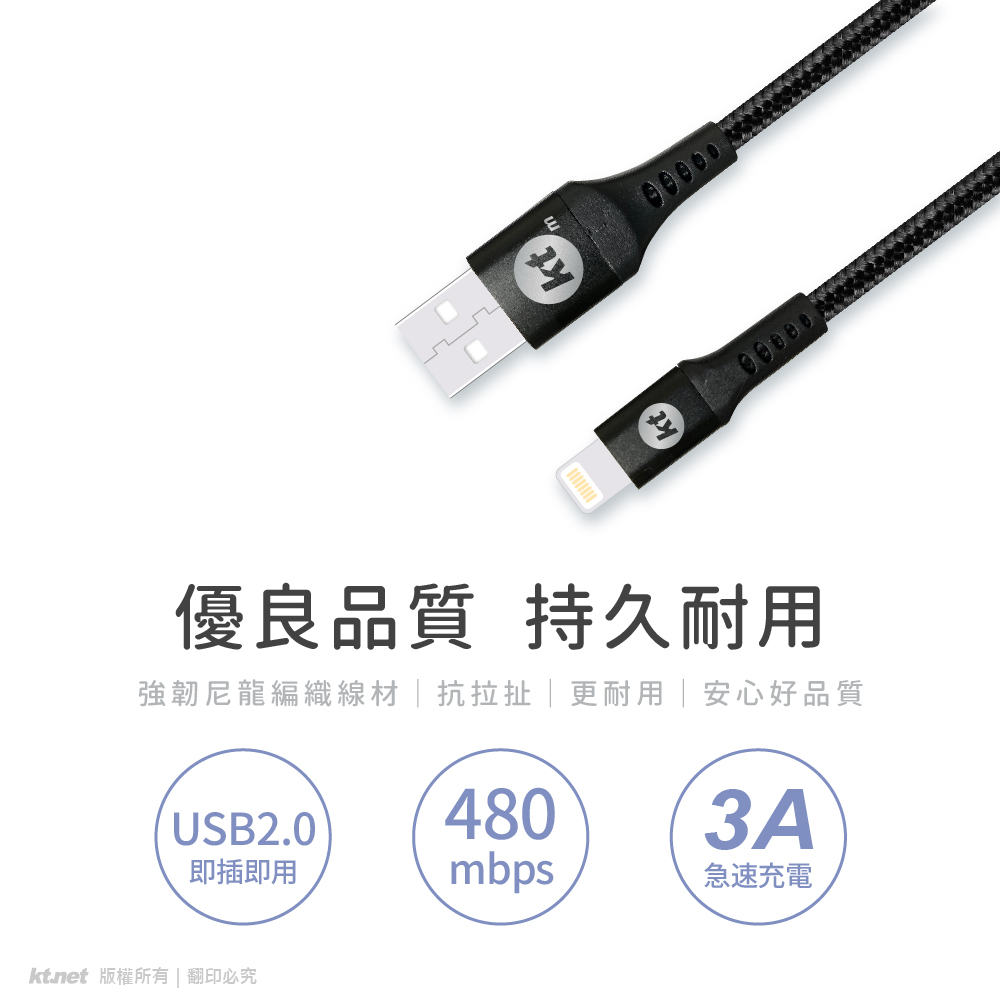 KTNET G62 神盾 USB-蘋果 Lightning 充電傳輸線 鋁合金接頭|3A 快充|MFI 認證|1.2M