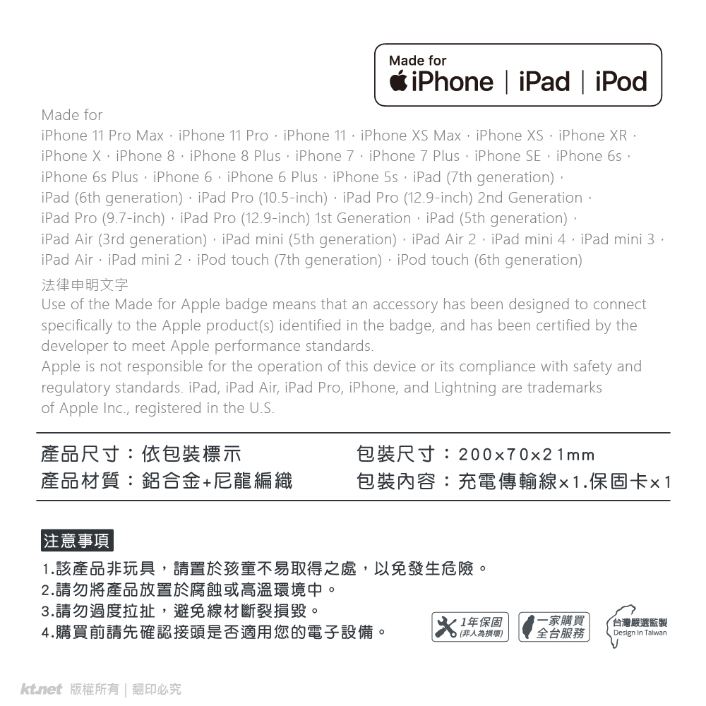 ◆為蘋果MFI認證線,相容全系列 iPhone / iPad / iPod 商品